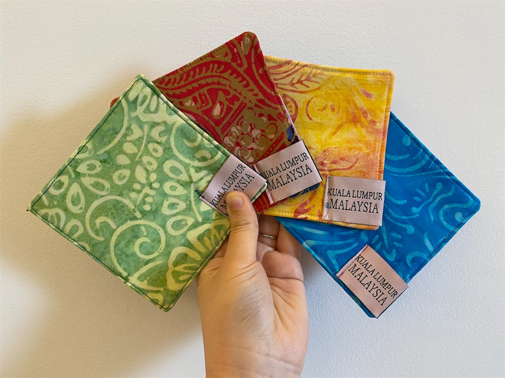バティック柄のクッションカバーやコースター。